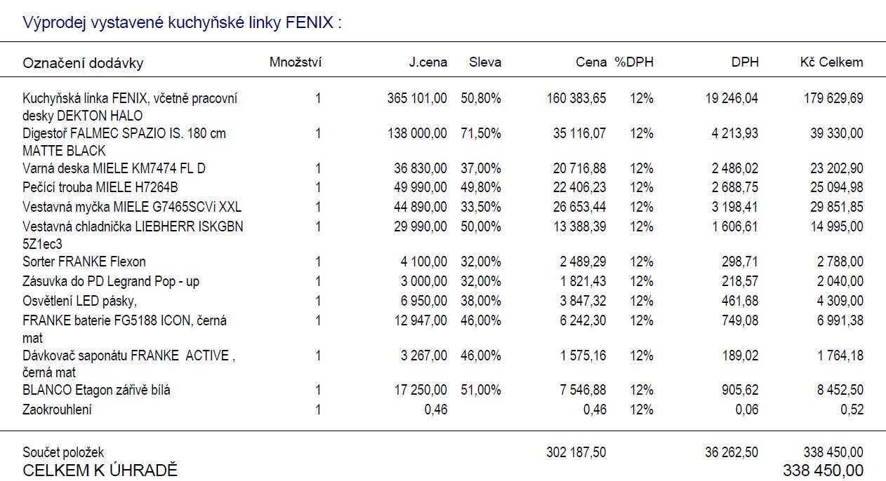 Ve výprodejï nabízíme vystavenou kuchyňskou linku DAMIO v hlubokém matu s nano povrchem dvířek, v černé barvě, s moderním bezúchytkovým systémem. Součástí ceny je luxusní pracovní deska z keramiky Dekton - Halo lesk. Celková cena je bez spotřebičů a doplňků, které je rovněž možné zakoupit za výrazně slevněnou cenu. V ceně rovněž není regálová stěna, umístěná kolmo na kuchyňskou linku.